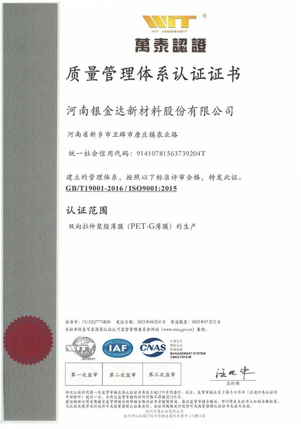 質(zhì)量管理體系認(rèn)證證書