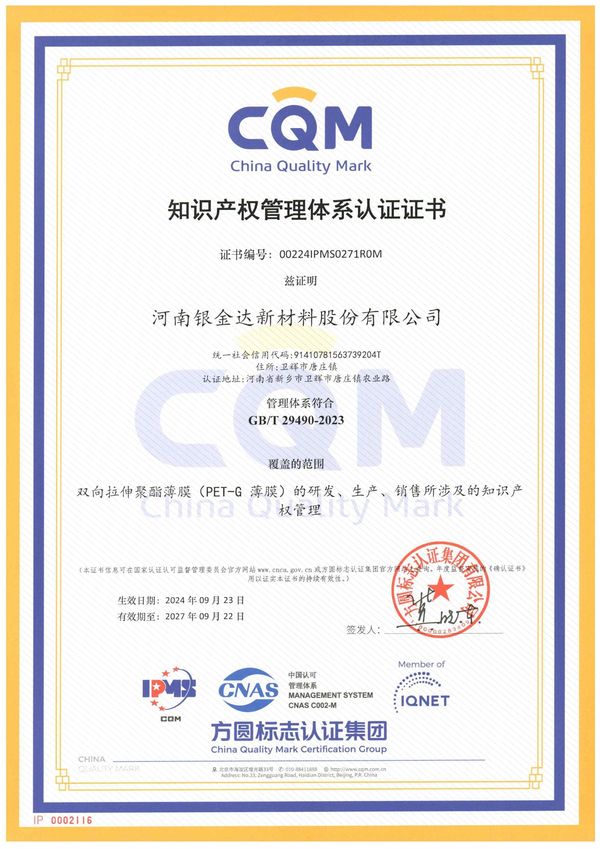 知識(shí)產(chǎn)權(quán)管理體系認(rèn)證證書
